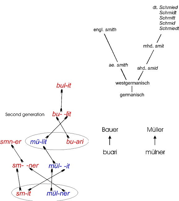 Dasselbe kann man auch mit Familiennamen verdeutlichen. Darauf brachte mich der Genetiker Peter Forster in Cambridge.