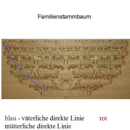 Eine Einschränkung ist bei Stammbäumen aus der Mitochondrien DNS zu machen. Wir können nur eine kleine Auswahl von Menschen ermitteln. Das konnten Sie am Familienstammbaum sehen. Die rote Linie am rechten Rand ist die Mitochondrien Linie. Alle Vorfahren in der Mitte, und das ist der weit größere Teil, bleiben bei dieser Methode im Dunkeln.