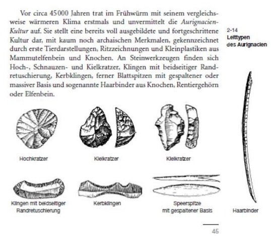 Die Aurignacien Kultur war die erste Steinzeitkultur, die man vom modernen Menschen in Europa gefunden hat. Dies sind die typischen Artefakte d.h. Formen.
