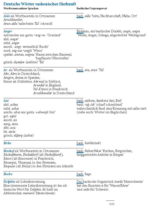 Außerhalb der Ortsnamen gibt es in den Sprachen Europas auch noch einige Wörter, die Vennemann aus dem Vaskonischen zu rekonstruieren glaubt. Ab Seite 429 meines Buches finden Sie eine Liste davon.