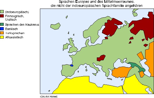 Professor Theo Vennemann an der Universität in München hat 1993 einen Vorschlag dazu gemacht. Er erforschte die europäischen Ortsnamen, die in ihren Wortbausteinen alle sehr ähnlich sind.