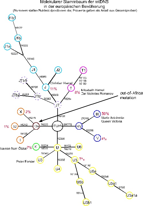 Da in 99% der Fälle die Kinder die Mitochondrien ausschließlich von ihrer Mutter erben, zeichnet die DNS der Mitochondrien eine direkte mütterliche Abstammungslinie.