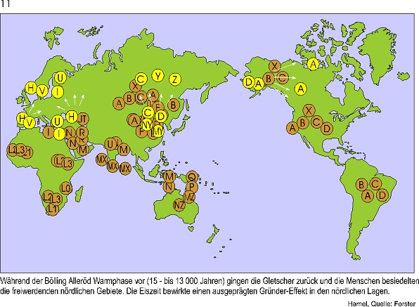 U5b1 geht aus U5b hervor und ist nur im fernen Norden vorhanden. Das weist ganz eindeutig auf die Migration von A nach B hin. In unserem Fall war es das Ausschwärmen vom eiszeitlichen Rückzugsgebiet aus nach Mittel- und Nordeuropa.